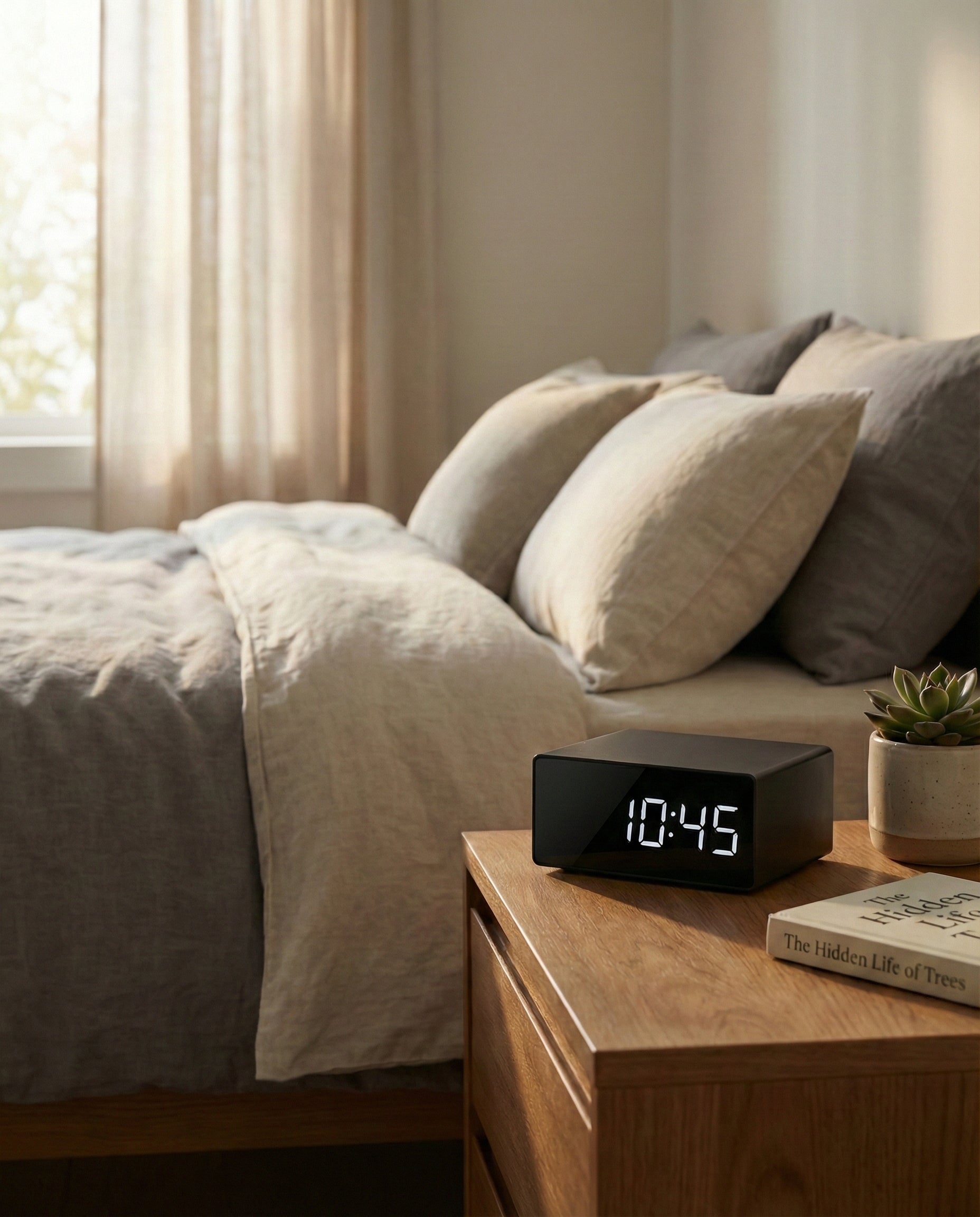 Functional Digital Clock — Display the time clearly and operate as a real bedside clock, blending naturally into any room at home.