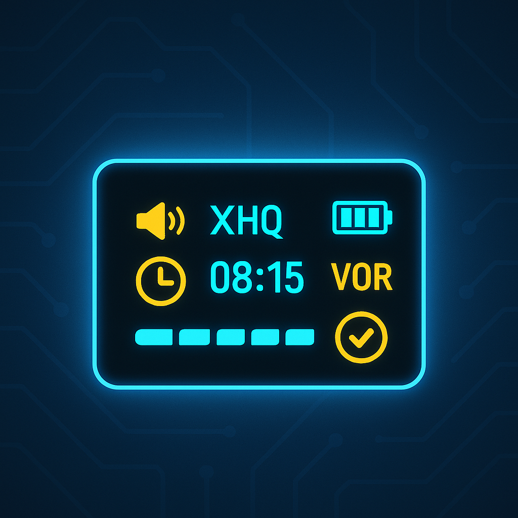 View filename, battery life, recording quality, and settings on the integrated display before use. The screen goes blank during recording to maintain a completely discreet appearance, giving you control without visual indicators that might draw attention.