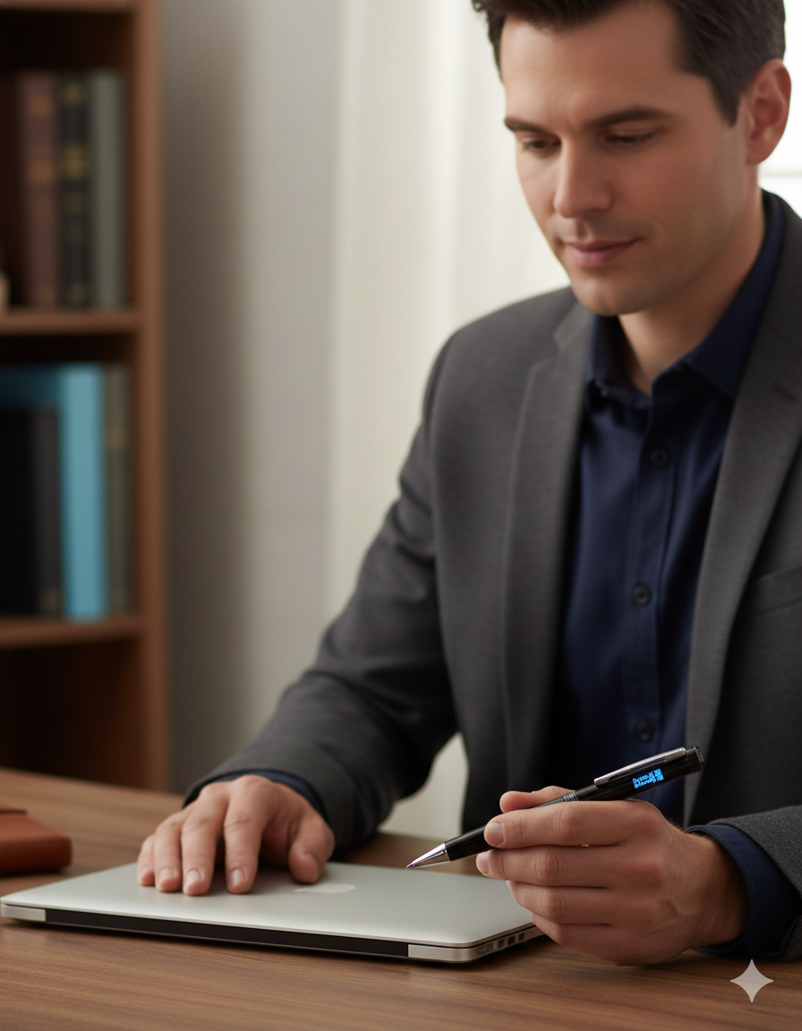 Slim Professional Design --- Very slim and normal-looking pen with no buttons or lights visible, ensuring the pen blends naturally into any professional or academic setting.